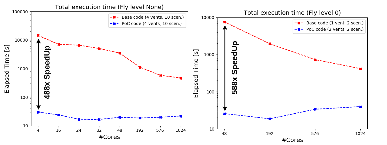 After our PoC, the PVHA_WF application was 588 and 488 times faster with fly 0 and ground levels, respectively, as shown in Figure 3.