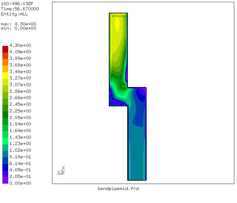 Fig. 1 CalculiX input data showing the flow velocity within the pipe