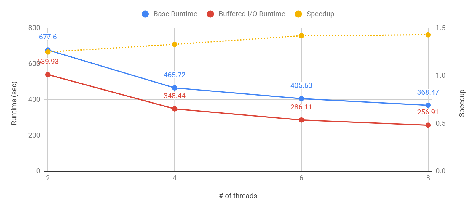 There are two major improvements that we made to the CalculiX application. One of the improvements is with its I/O write practice. CalculiX writes millions of small chunk log data continuously into the output file, and these writing activities account for almost 40% of the application's runtime. Using buffered I/O, we managed to improve the CalculiX execution runtime and speed up the application to more than 30% faster than the original execution time.