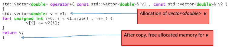 Figure 3: Implementation of the overloading of + operator for type vector<double>