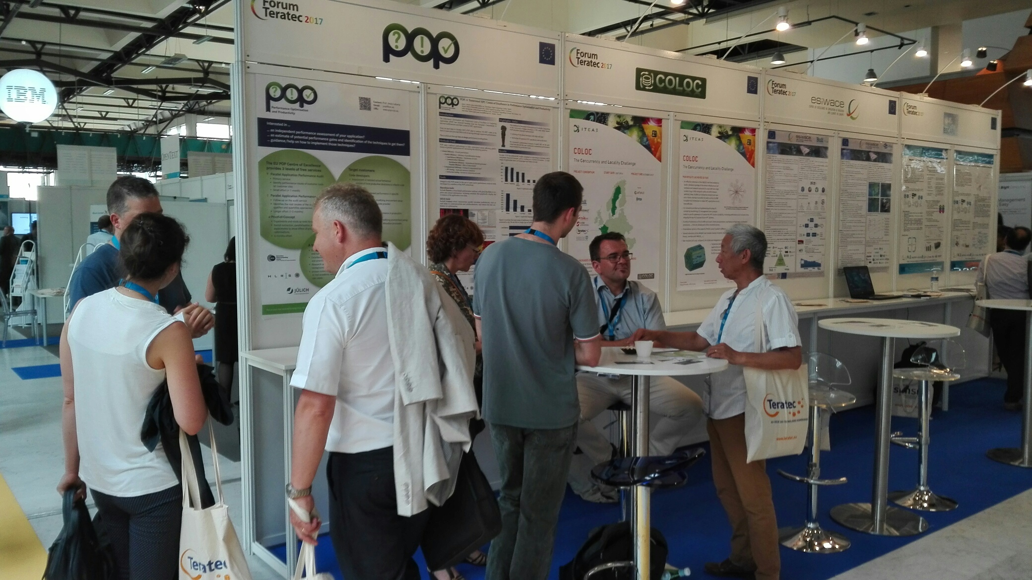 POP took part in Teratec Forum via the "Café Europeen de la Recherche": a dedicated space within the exhibition where European research projects could promote their activities and their research results. At the POP booth, the visitors could learn about POP and the code performance analysis services it provides. Several visitors were quite interested while discussing POP with Jesus Labarta, the POP coordinator who came from Barcelona just for this event.