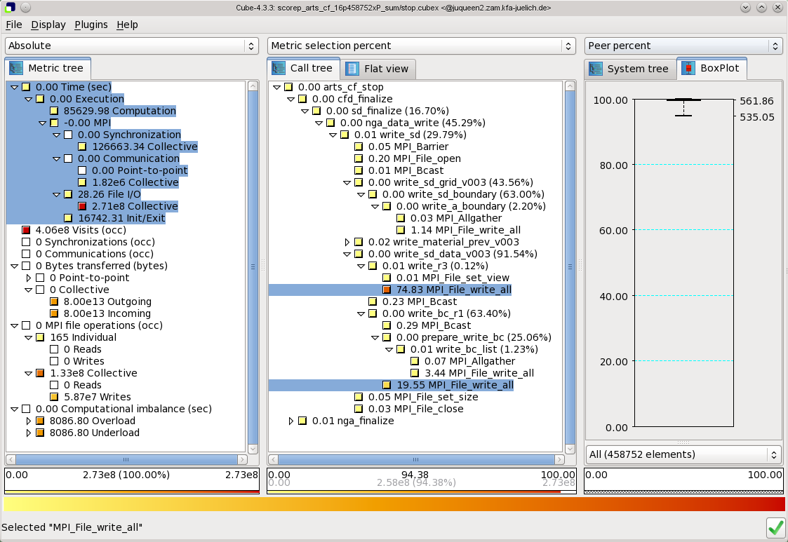 Scalasca and Score-P quantify metric severities for each call-path and process/thread, storing them in analysis reports for examination with the Cube GUI (see above) or additional processing via a variety of Cube utilities.