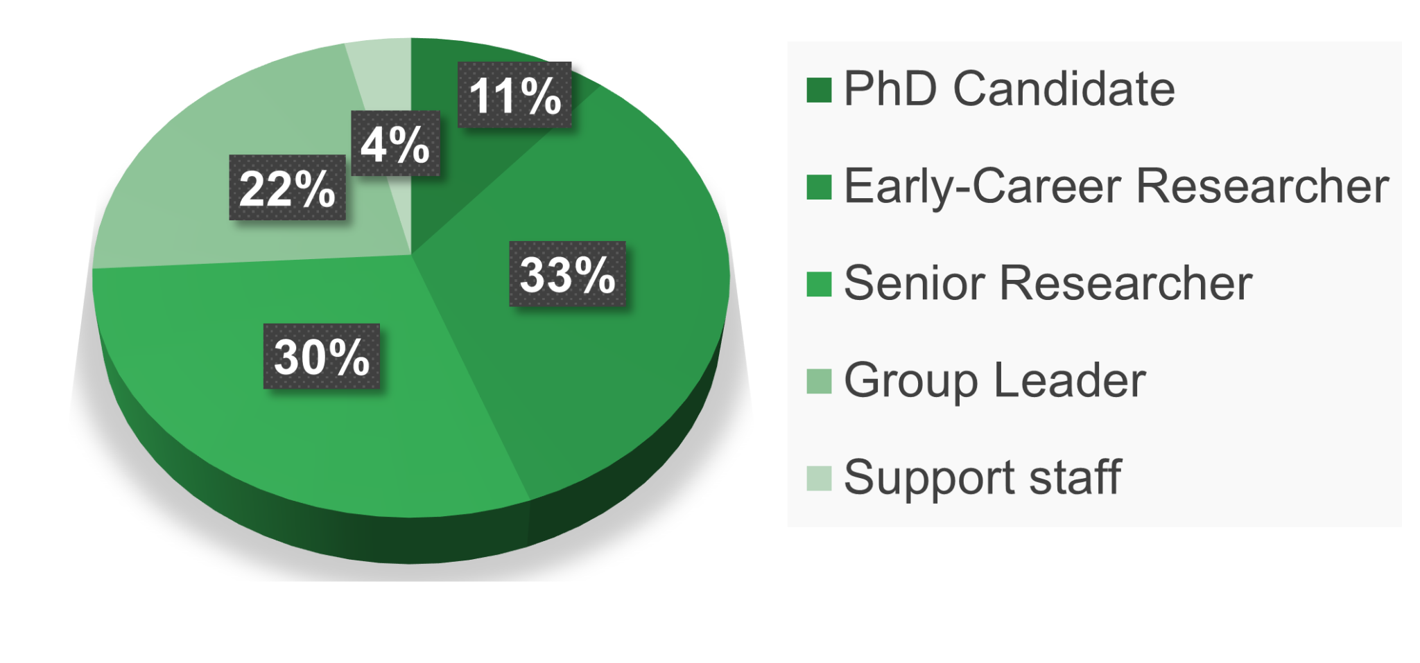 • In terms of career stage, speakers were evenly distributed among early-career researchers, senior researchers, and group leaders (see Fig 3).