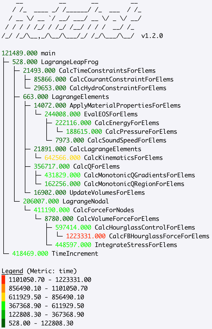 With a few lines of Python code, a user can also compare several performance profiles as shown here. We refer the reader to the hatchet documentation for the complete Hatchet API and usage examples.